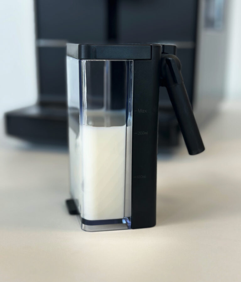 The Melange offers a smooth and simple user experience. It features a modern touch control panel with clear drink icons. Users can select Espresso, Double Espresso, Americano, Cappuccino, Latte, Macchiato and several other drinks with ease. Therefore, it caters to different tastes and preferences. The integrated milk carafe also helps create silky, consistent milk foam, which is essential for cappuccinos and lattes. In addition, the system keeps milk preparation clean and controlled.