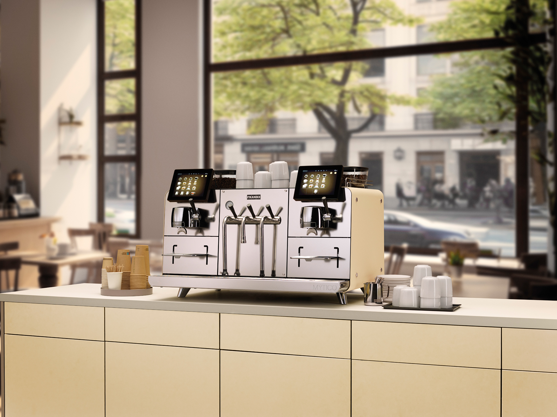 Franke Mytico DUE – Fully automatic touch screen Espresso group machine. Comes in one of seven colours to suite your environment. Our user-friendly touch screens make it easy to find a customer’s drink of choice or create signature drinks, boosting productivity and reducing wait times.