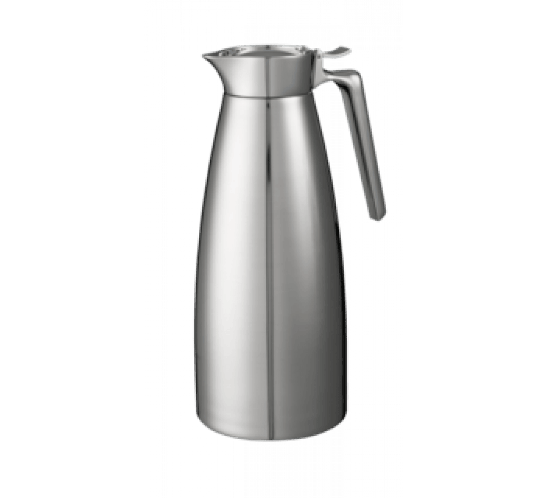 The decanters of the Qline are double walled stainless steel and available in models for 0.3 (S)/0.6 (M)/1 (L) litre. The decanters have hinged lids and stainless steel grips.